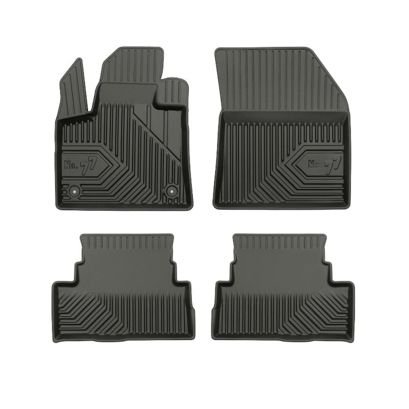 Gumijas paklājiņi Premium 77: (augstas kvalitātes plastmasa, gumijas maisījums / TPE, komplekts - 4 gab., melni, malas augstums 4 cm, uzstādīšanas metode - klipši).AUTO PAKLĀJIŅI FROGUM 77 PREMIUM. Ideāla piegulšana, pateicoties inovatīvai 3D skenēšanas tehnoloģijai, Malas augstums - 4 cm nodrošina lielāku aizsardzību pret netīrumiem, Moderns un funkcionāls dizains, kas notur netīrumus paklājiņa iekšpusē, Neslīdošas speciālas klipši, viegli uzstādāmi, Īpaša aizsardzība, kas ļauj nolaist vadītāja kāju. Augsta līmeņa aizsardzība jūsu automašīnai, paklājiņi lieliski pieguļ un perfekti pieguļ salona grīdai. Moderns un funkcionāls dizains, kā arī augsta mala garantē efektīvu ūdens un netīrumu savākšanu un novērš to noplūdi. Tas uztur automašīnas salonu tīru. Izgatavoti no augstas kvalitātes gumijas, kas nesatur toksiskas sastāvdaļas. Bez smaržas. Paklājiņiem ir klipši, tāpēc tos ir viegli piestiprināt pie grīdas. Gumijas paklājiņi saglabā savu elastību pat pie temperatūras izmaiņām. Īpašā virsma neļauj paklājiņiem slīdēt braukšanas laikā, kas ievērojami ietekmē brauciena drošību un komfortu.