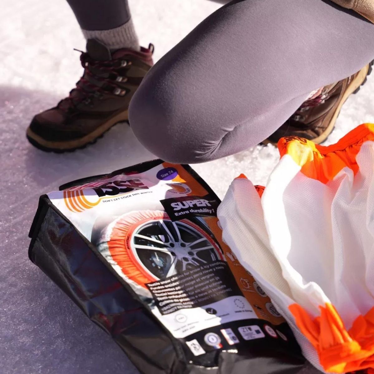 The Isse model Super textile snow chains in size 74 are an innovative and effective solution for winter road conditions. Thanks to their state-of-the-art design, they offer exceptional grip on slippery surfaces such as snow and ice, ensuring safety and comfort. Made from tough, wear-resistant materials, they are ideal for situations where traditional chains could be difficult to fit or awkward to use.