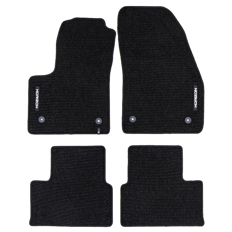 ELEGANTS INTERJERS. Premium klases HORIZON paklāji izceļas ar savu stilīgo un moderno izskatu, kas perfekti uzsver automašīnas interjera eleganci. To estētiskais dizains ļauj tiem nevainojami iekļauties jebkura veida interjerā un piešķirt tam ekskluzivitāti. AUGSTS KOMFORTA LĪMENIS. Pateicoties cilpu plūksnu struktūrai un svaram 535 g/m², HORIZON paklāji ir ne tikai izturīgi, bet arī mīksti un patīkami uz tausti. Tas nodrošina izcilu komfortu katrā braucienā un palielina automašīnas ikdienas lietošanas ērtības. Viegli kopjams HORIZON ir ārkārtīgi praktisks produkts, ko var ātri uzstādīt un viegli kopjams, kas to padara vēl pievilcīgāku. Izturība un aizsardzība HORIZON paklājs nodrošina ilgtermiņa aizsardzību jūsu automašīnas salonam, efektīvi aizsargājot grīdu no netīrumiem un bojājumiem. Tā izturīgā konstrukcija un augstas kvalitātes materiāli nodrošina, ka tas kalpos jums ilgu laiku, nsaglabājot savu pievilcīgo izskatu. Paklāja granulētais gumijas pamatne nodrošina izcilu saķeri un novērš slīdēšanas risku braukšanas laikā. Polipropilēna diegu izšūšana.nMateriāls – samts.