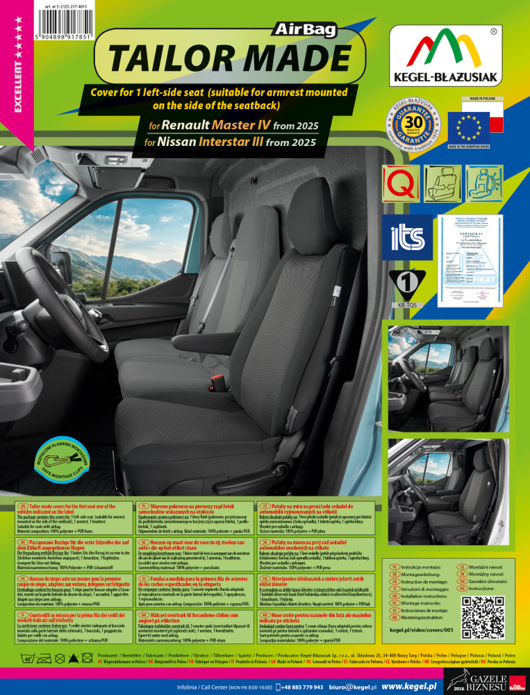 Priekšējā šofera sēdekļa pārvalks Nissan Interstar III 2025.g + Kegel-Blazusiak