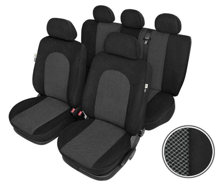 ATLANTIC pārvalki ir īpaši izturīgi un izturīgi – izturīgi pret nodilumu un plīsumiem. Tie aizsargā automašīnas polsterējumu no netīrumiem un bojājumiem. Izgatavoti galvenokārt no augstas kvalitātes žakarda materiāla – tie lieliski izskatās transportlīdzekļa iekšpusē. Dažas materiāla daļas ir viendabīgi melnas, bet citas - vidējās - rotātas ar smalku čeku. Pārvalku konstrukcija ļauj tos uzvilkt, nenoņemot galvas balstus; tā arī aizsargā sēdekļu aizmugurējo daļu, pateicoties tā pilnīgajam korpusam; tas arī dod iespēju sadalīt gan sēdekli, gan dīvāna atzveltni. Pārvalki ir paredzēti jauniem automašīnu modeļiem, kuriem ir pieci galvas balsti un trešā drošības josta, kas iziet no aizmugurējā sēdekļa atzveltnes.