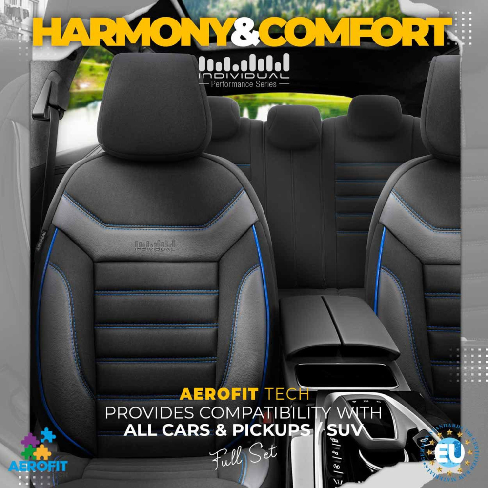 Auto sēdekļu pārvalku komplekts OTOM INDIVIDUAL 203 BLACK/BLUE 3-ZIP