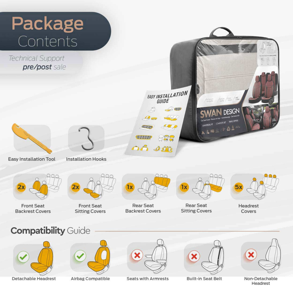 Pārvalkiem nav izgriezumu jostām vai aizmugurējiem galvas balstiem, jo tie ir paredzēti dažādiem automašīnu modeļiem. Pēc rūpīgas montāžas un montāžas jums pašiem jāizveido nepieciešamie caurumi.