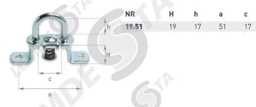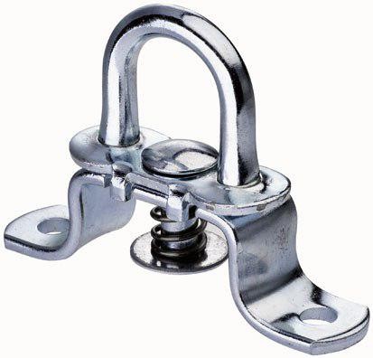 Piekabes apmales stiprinājums ar atsperi, kuru nospiežot ir iespējams pagriezt cilpu pa 90°