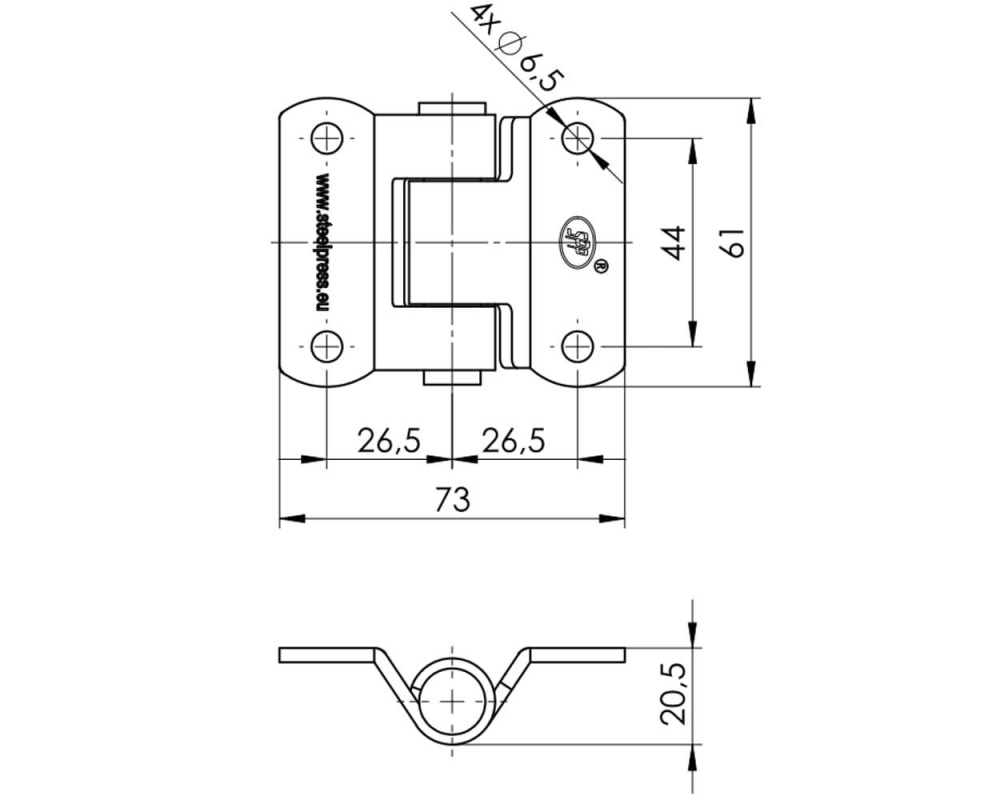 Cinkota tērauda piekabes sānu bortu eņģe ZW-02.40