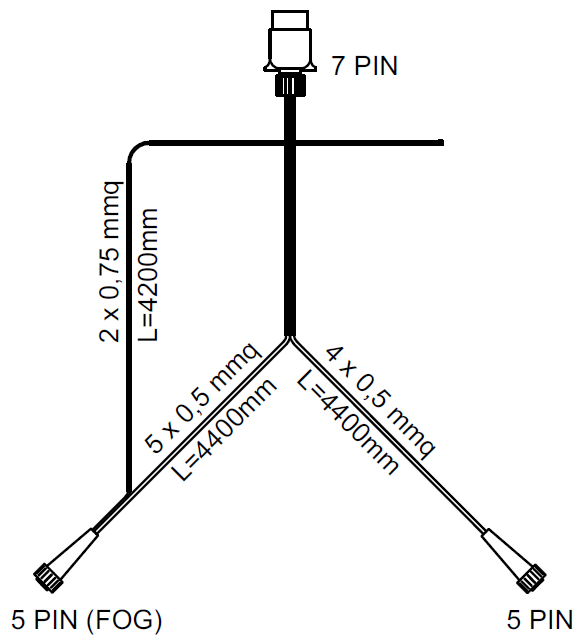 - 1x kabelis ar garumu 4,5 m (sadalīts 2x 7 dzīslu vados uz katru lukturi)