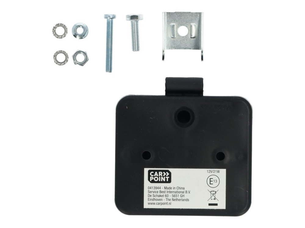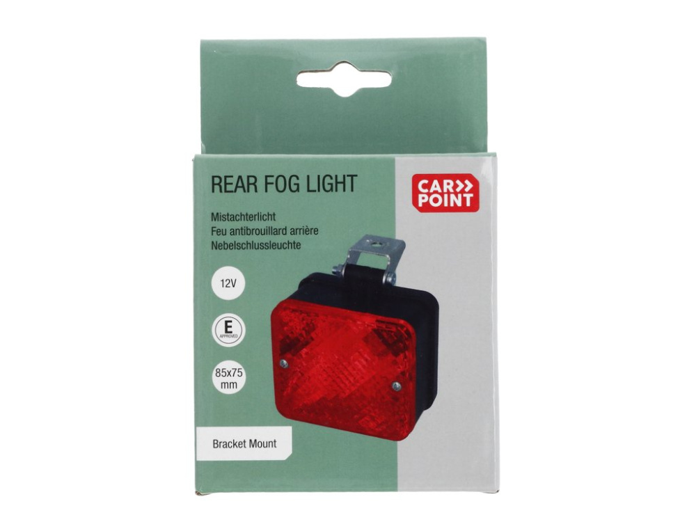 12 voltu aizmugurējais miglas lukturis ar E apstiprinājumu vieglajām automašīnām, kemperiem vai piekabēm. Aizmugurējais miglas lukturis ir ievietots izturīgā plastmasas korpusā. Aizmugurējā miglas luktura izmēri ir 85x75x50 mm. Var uzstādīt tieši uz transportlīdzekļa, izmantojot montāžas plāksni miglas luktura aizmugurē vai ar komplektā iekļauto kronšteinu. Montāžas plāksnei ir caurumi vadu pievienošanai (ekskluzīvi). Aizmugurējais miglas lukturis ir aprīkots ar 12 voltu P21W spuldzi.