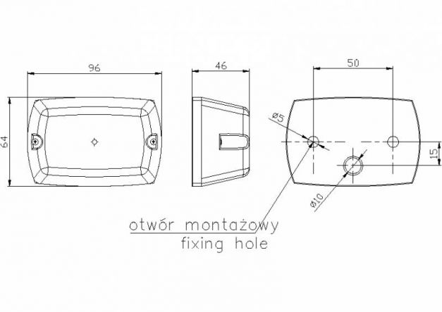 Piekabes gabarītlukturis - balts 65x90mm 12V Fristom FT-006B