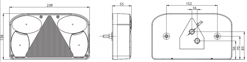 Lukturim ir gabarītu gaisma, stop gaisma, pagriezienu gaisma, atpakaļgaitas gaisma un trīsstūra atstarotājs.