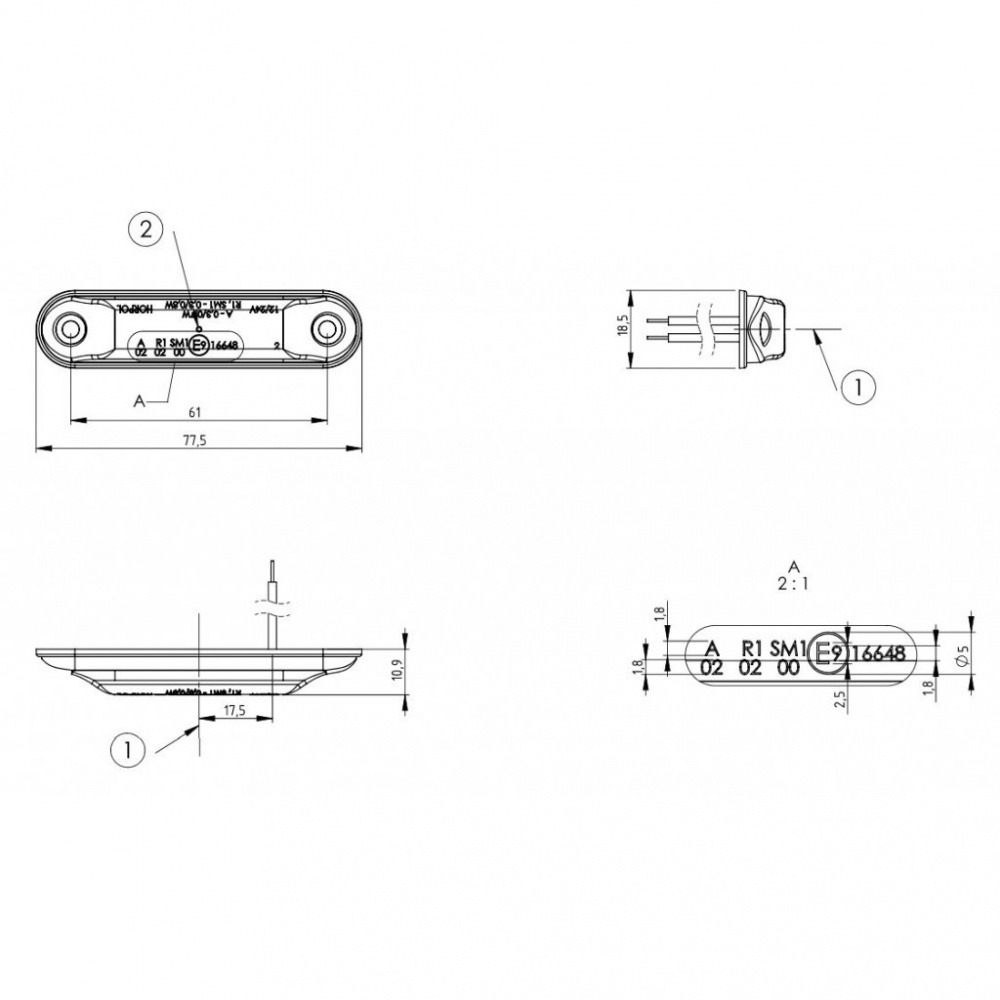 4LED Balts piekabes gabarītlukturis 12V/24V HORPOL SJ HOR 88 LD 2327