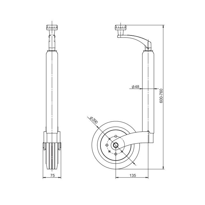 Atbalsta ritenis ar kronšteina stiprināšanas izmēru 48mm