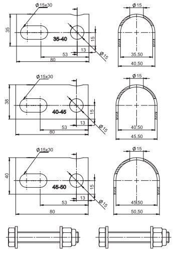 Atslēgu mehānisma pārejas komplektā ir 3 dažādi izmēri ar 2 skrūvēm.