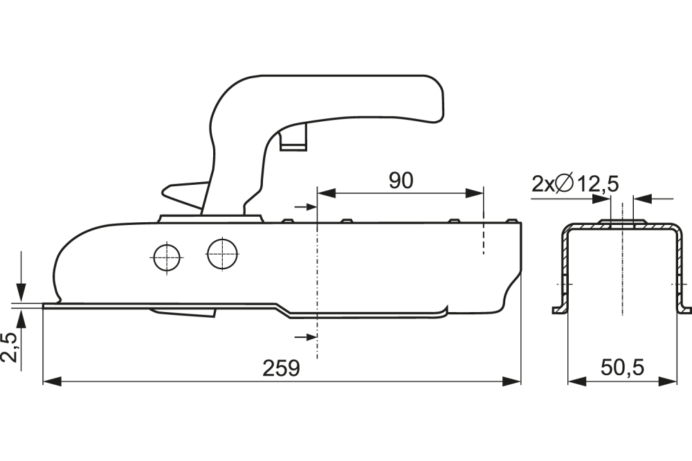 Piekabes sakabes mehānisms 750kg kantains 50mm STEELPRESS ZSK-750H
