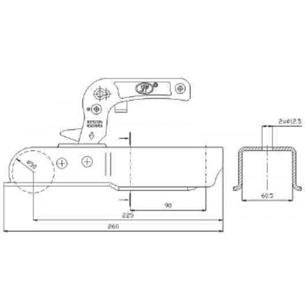 Piekabes sakabes mehānisms 1300kg kantains 60mm STEELPRESS ZSK-1300I