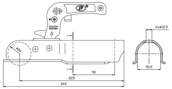 Piekabes sakabes mehānisms 1300kg apaļš Ø50mm STEELPRESS ZSK-1300E