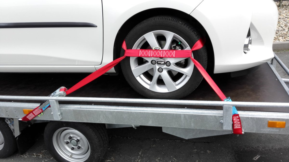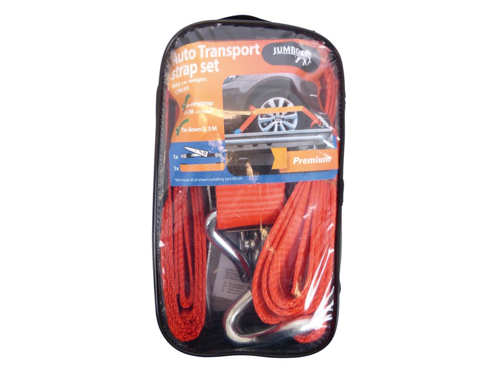 Šī pilnīgā Jumbo stiprinājuma siksna ir ideāls risinājums, lai droši pārvadātu automašīnu uz piekabes. Šis komplekts sastāv no 2 daļām, no kurām 1 gabals ir 60 cm ar cilpu abās pusēs, caur kurām jāliek otrs gabals. Tas stingri pievelk siksnu pret transportlīdzekļa riteni, lai transportlīdzekli varētu droši transportēt. Siksnai nav gredzenu, lai diski nevarētu tikt bojāti.