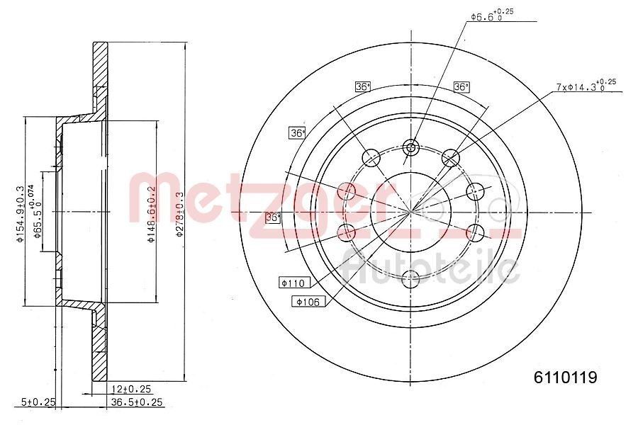 METZGER 6110119 Bremžu diski, OPEL VECTRA C, SAAB 9-3, FIAT Croma II