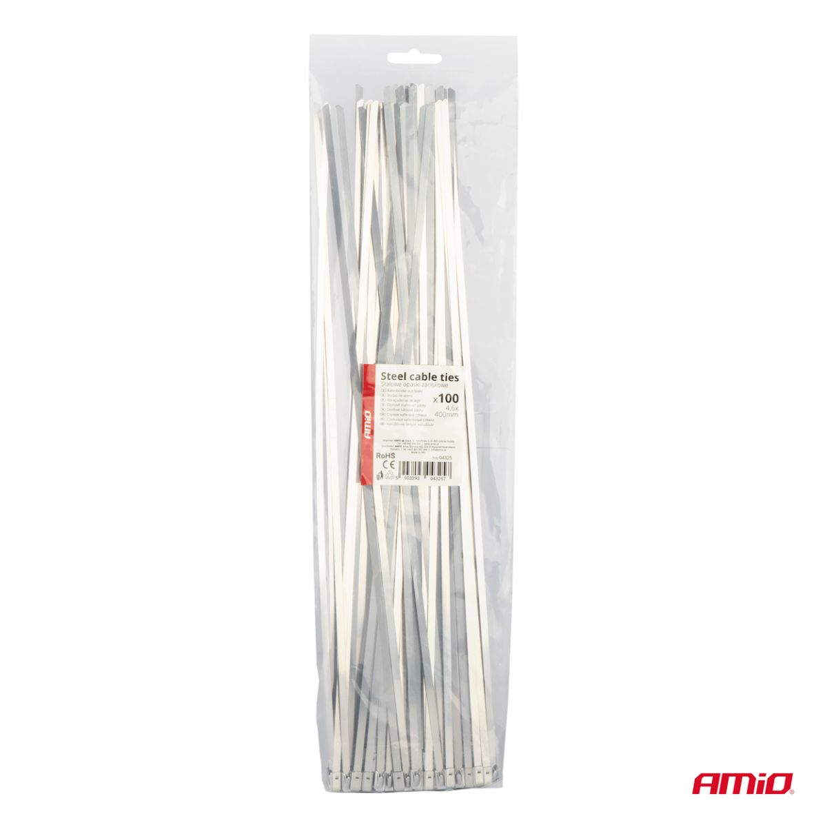 AMiO#39;s 4.6 x 400mm stainless steel professional metal zip ties are a reliable solution for applications requiring superior strength and resistance to external conditions. Designed for industrial, automotive and construction applications, they are ideal where durability and secure fastening is important.