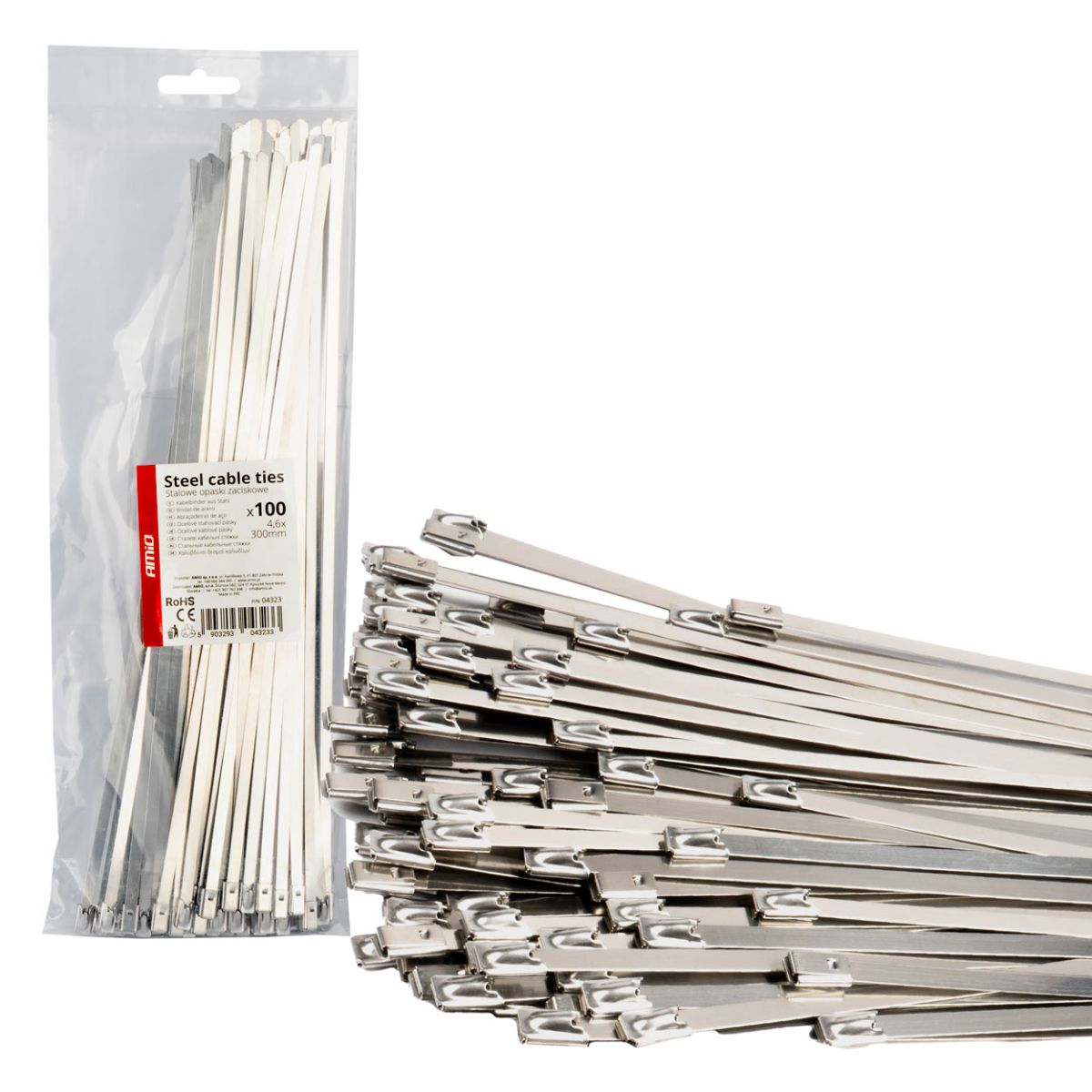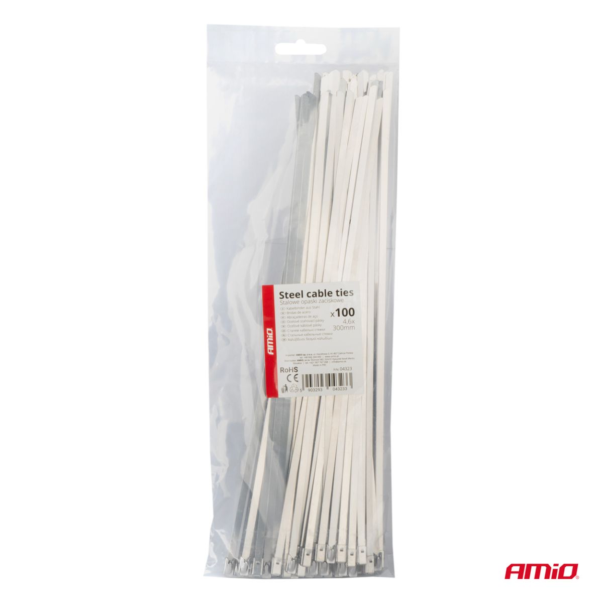 AMiO#39;s 4.6 x 300mm stainless steel professional metal zip ties are a reliable solution for applications requiring superior strength and resistance to external conditions. Designed for industrial, automotive and construction applications, they are ideal where durability and secure fastening is important.