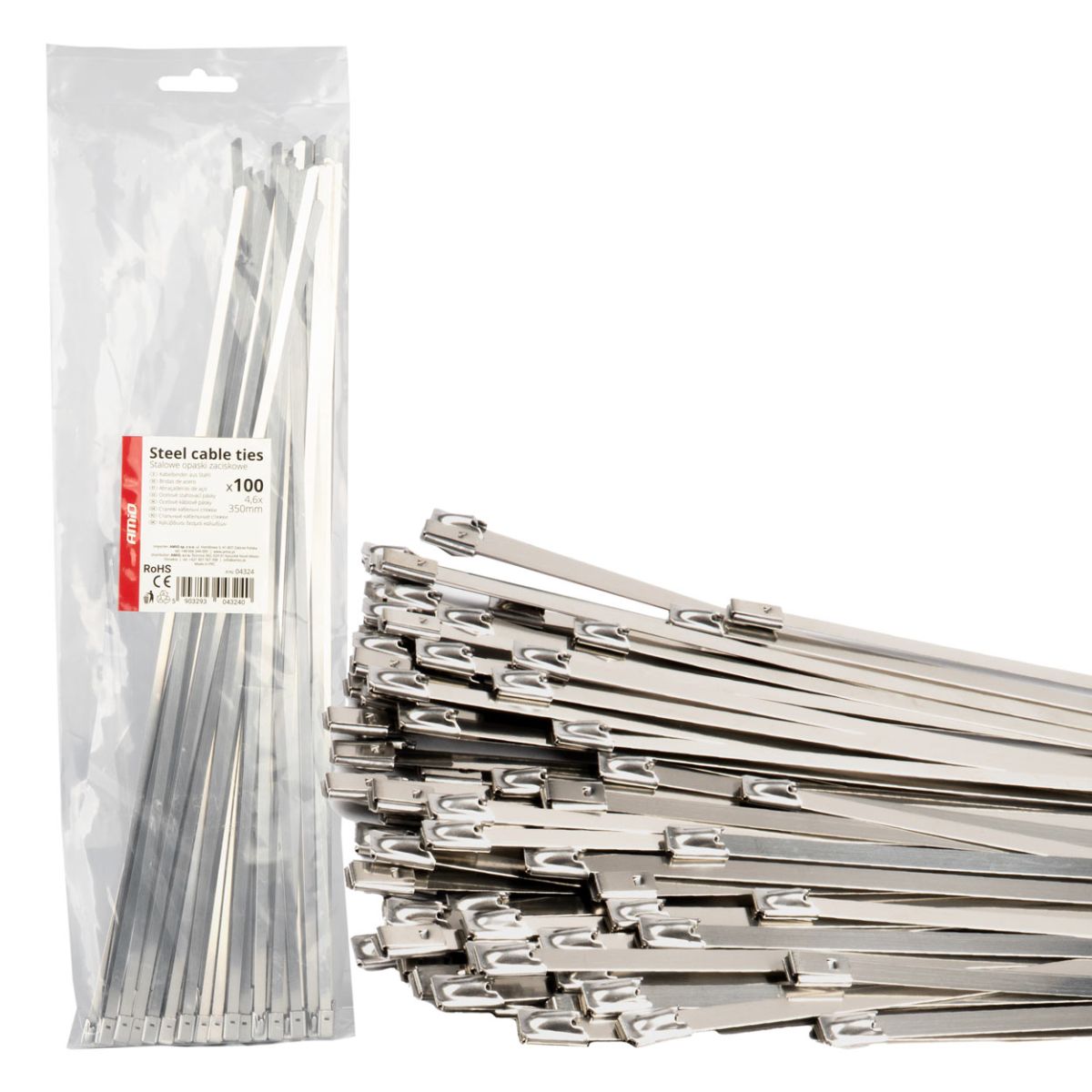 AMiO#39;s 4.6 x 350 mm stainless steel professional metal cable ties are a reliable solution for applications requiring superior strength and resistance to external conditions. Designed for industrial, automotive and construction applications, they are ideal where durability and secure fastening is important.