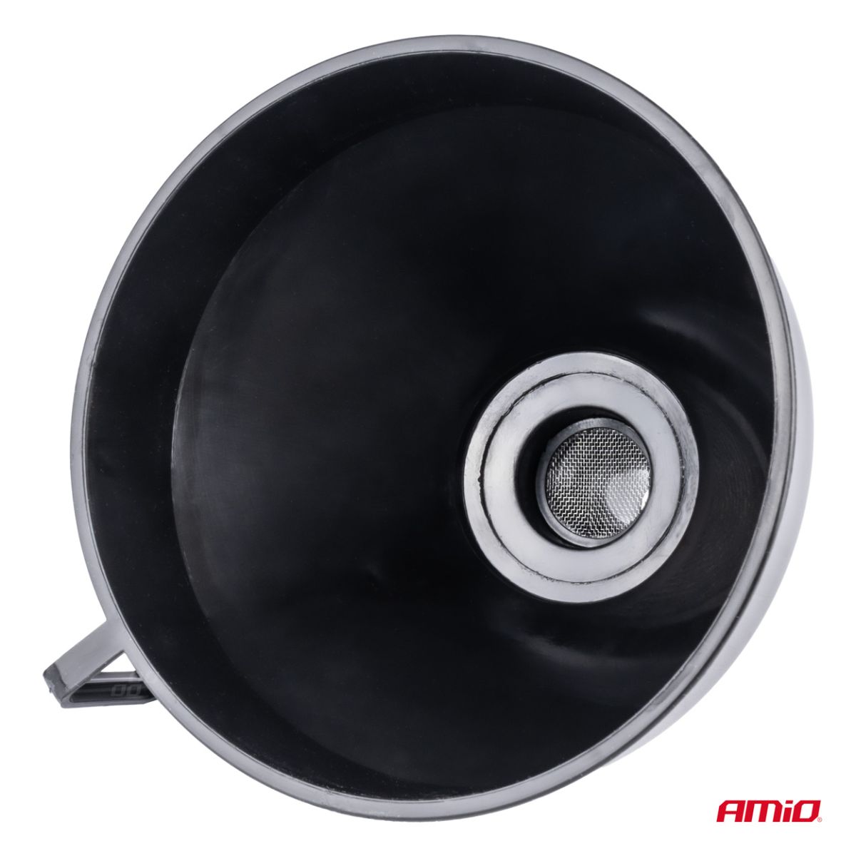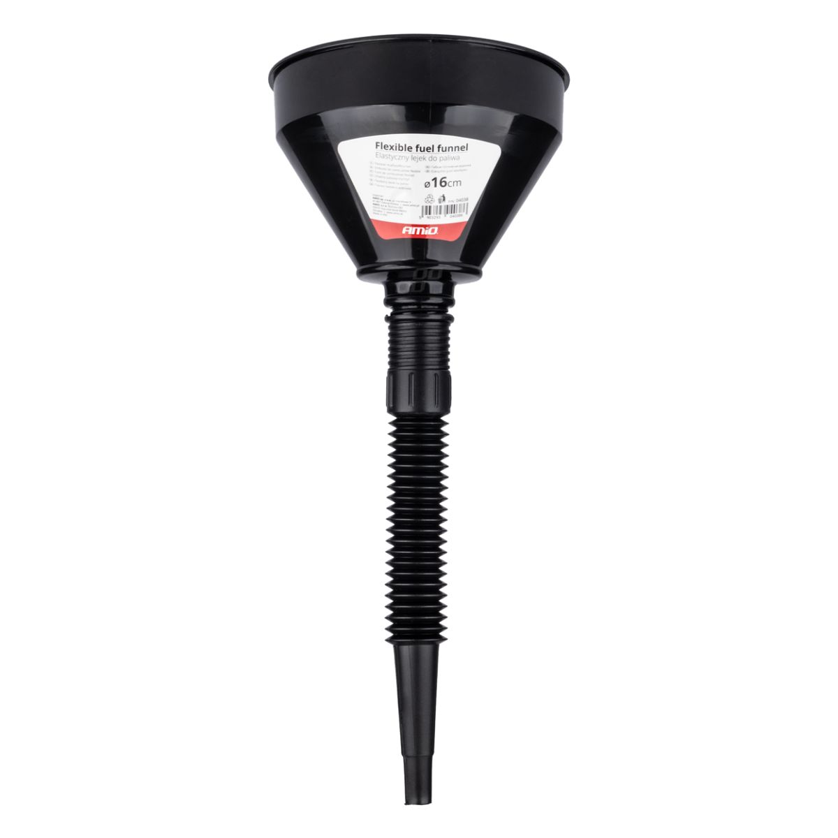 Elastīga melna universāla piltuve ar sietiņu degvielai 16 cm AMIO-04038