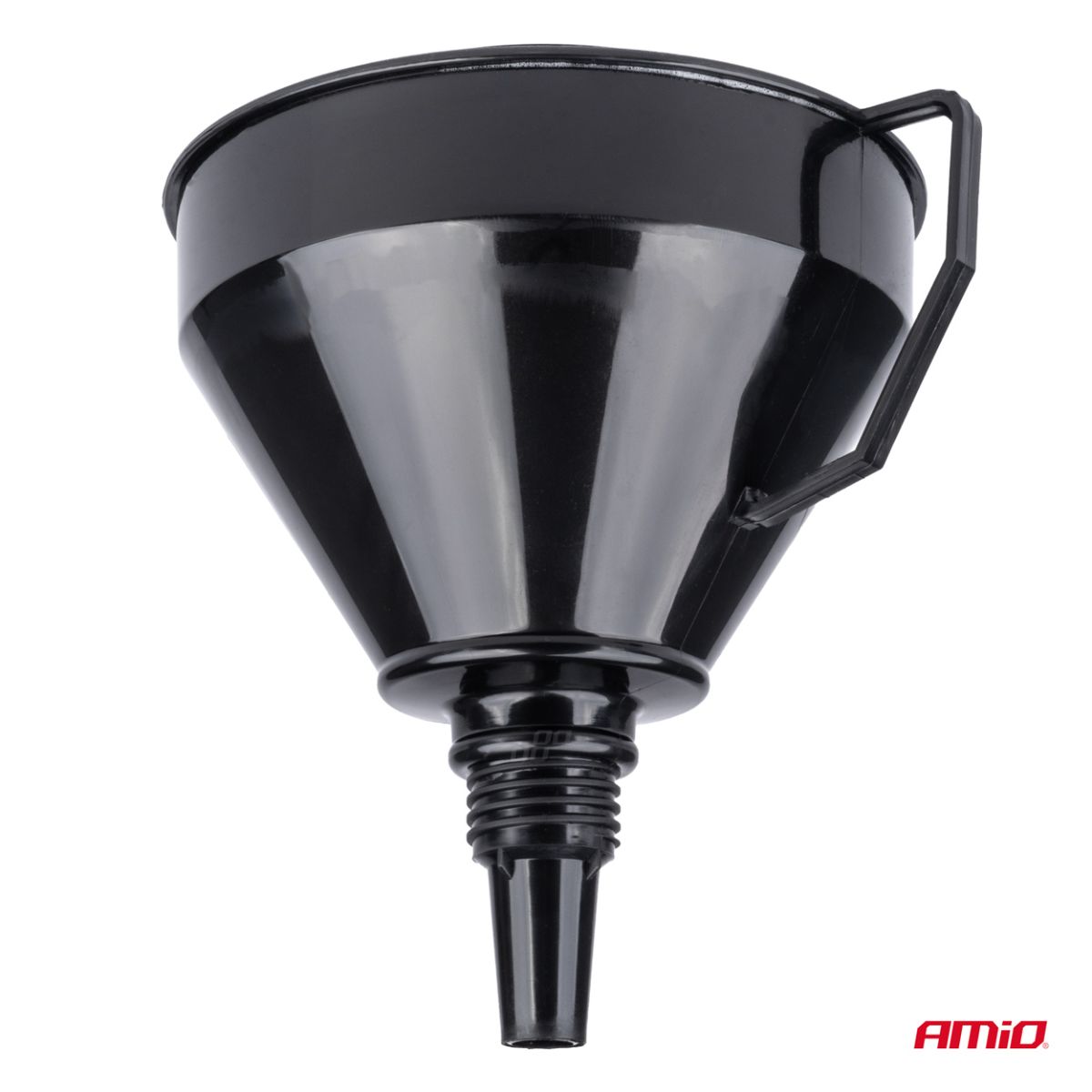 Introducing a high-quality black plastic funnel with strainer, ideal for anyone who appreciates functionality and convenience. This two-piece funnel is an indispensable tool in every workshop, garage or home.