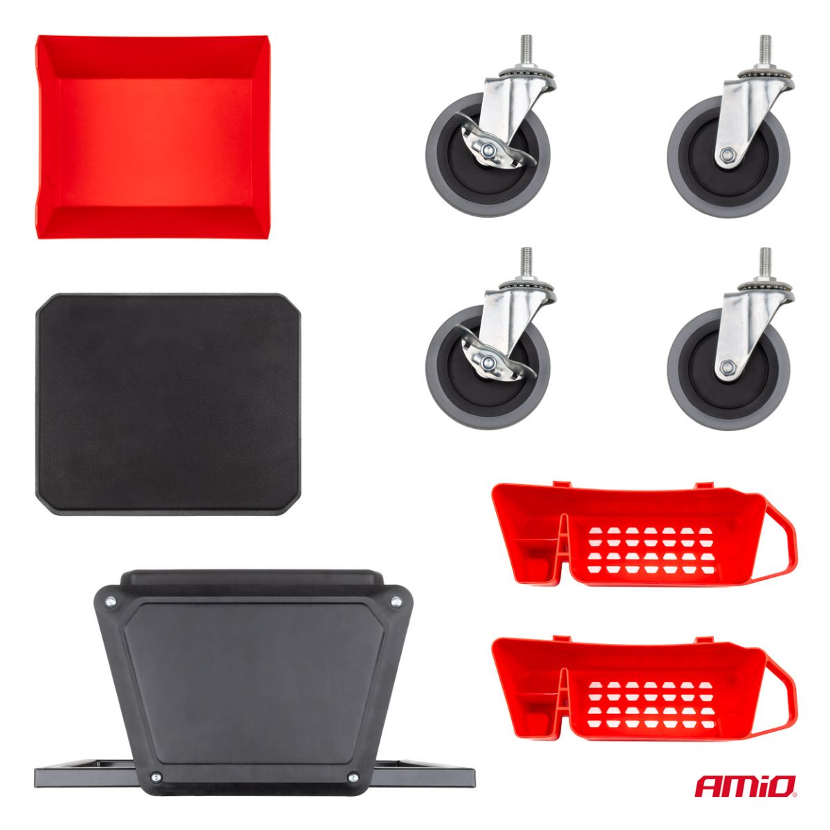 Uz riteņiem pārvietojams sēdeklis ar instrumentu glabāšanas vietu 150kg AMIO-04268