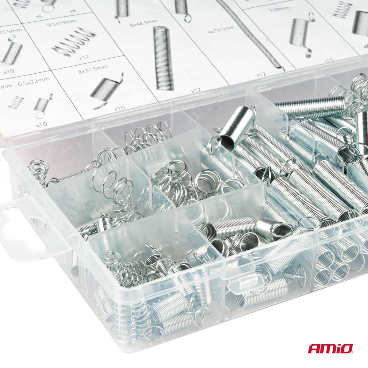 A practical set of 200 draw and extension springs indispensable for automotive, agricultural or industrial applications. The practical packaging allows easy access to a convenient size.