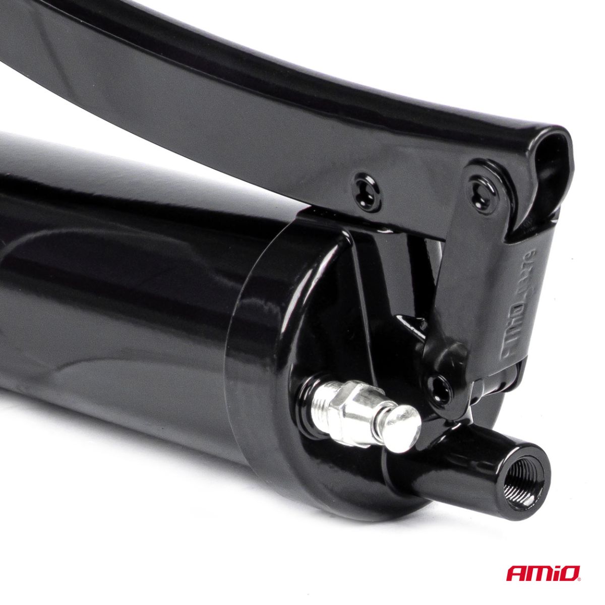 1. Pipe material: steel pipe 2. Cover material: aluminum 3. Capacity: 500CC 4. Outer diameter of steel pipe: 56MM, inner diameter 54MM 5. Working withstand voltage: 10000PSI 6. Number of pistons: 1 Accessories: 8 * 300MM hose+flat nozzle+hard pipe+pointed nozzle