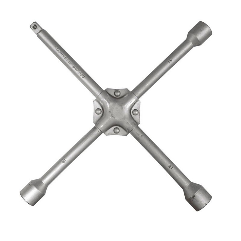 - Krustveida uzgriežņu atslēga ar 3 visizplatītākajiem riteņu uzgriežņu izmēriem