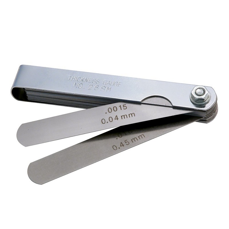 Soļi norādīti mm 0.04/0.05/0.06/0.08/0.10/0.13/0.15/0.18/0.20/0.23/0.25/0.28/0.30/0.33/0.35/0.38/0.43/0.45/0.48/0.50/0.53/0.55/0.58/0.60/0.63