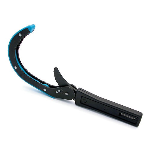 Āķis uz atslēgas saspiež eļļas filtru, atvieglojot filtra pārvietošanu un noņemšanu.
