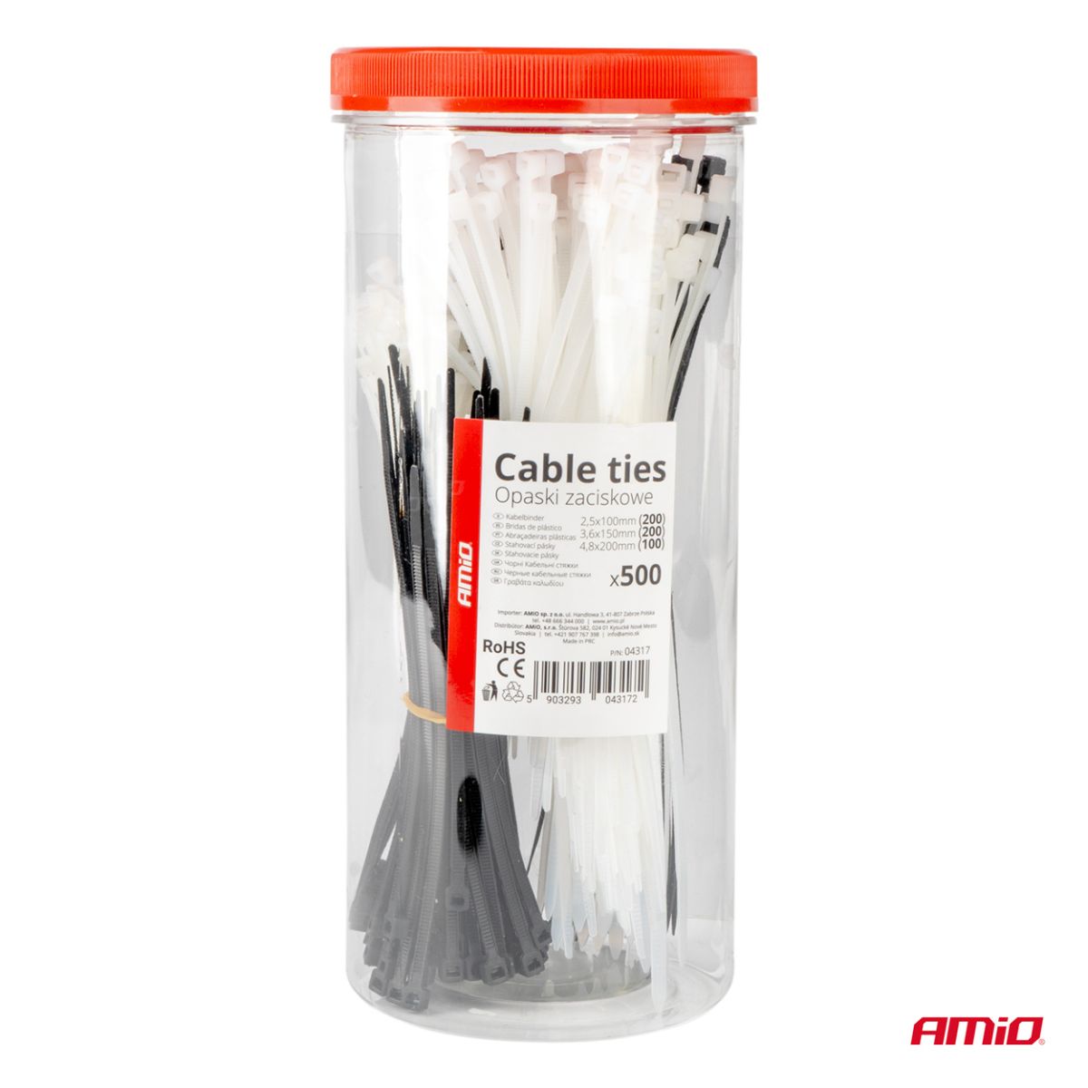 AMiO#39;s set of multicoloured cable ties is a reliable way to organise your cables and keep your space organised. With a variety of colours and sizes, these cable ties are perfect for both home and professional use. Up to 500 ties are included in the set, ensuring versatility and a supply for the long term: