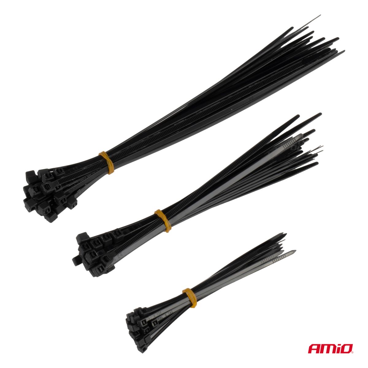 Plastmasas savilcēji melni, dažādi izmēri 60 pcs. AMIO-04315