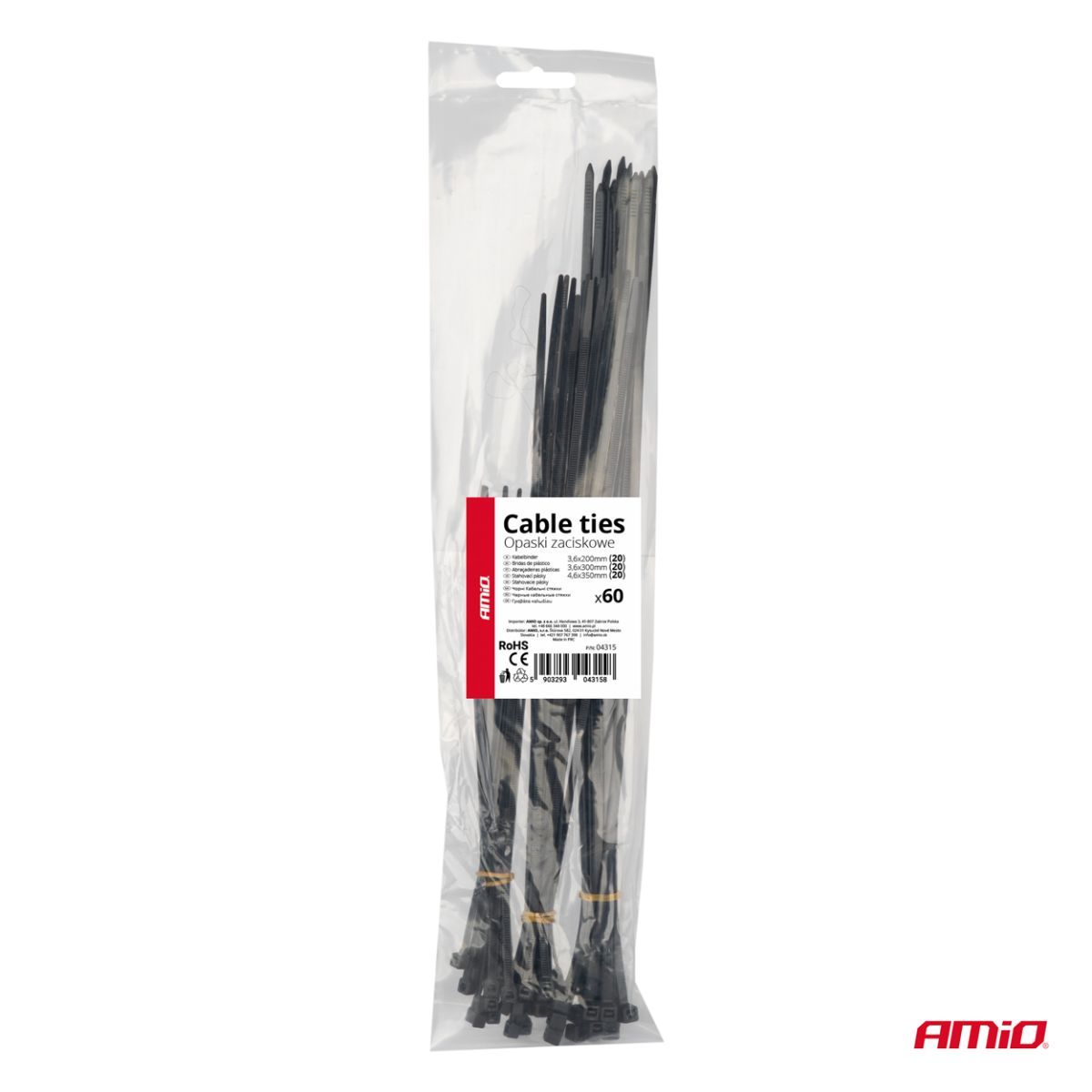 AMiO#39;s set of black zip ties is a versatile and durable solution, ideal for wire organisation, cable assembly and many other technical applications. The pack contains 60 pieces of cable ties in various lengths to suit different installation needs: