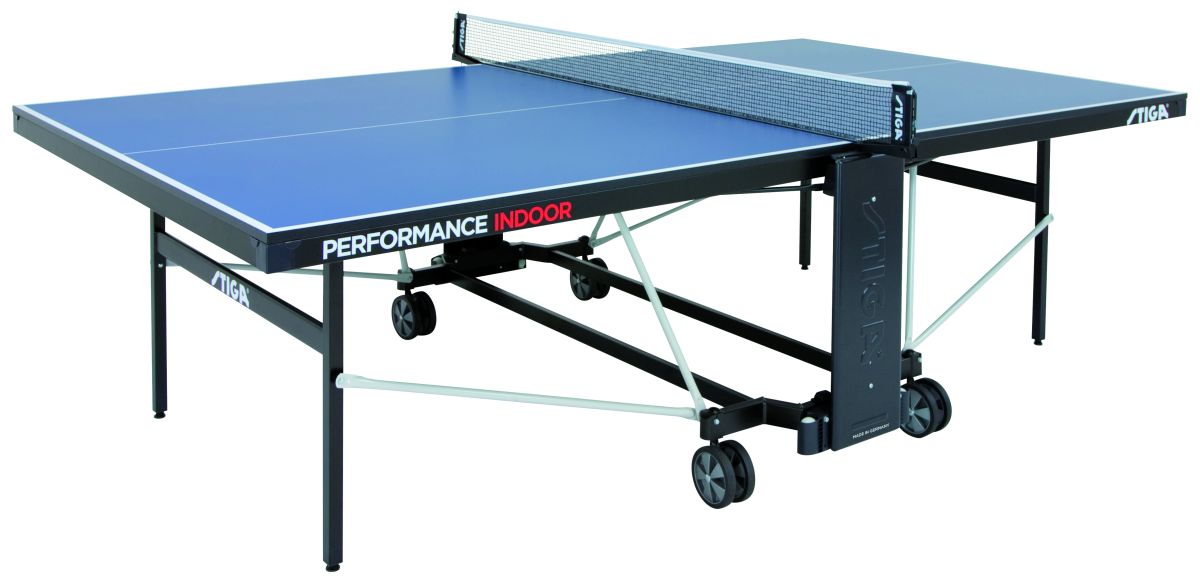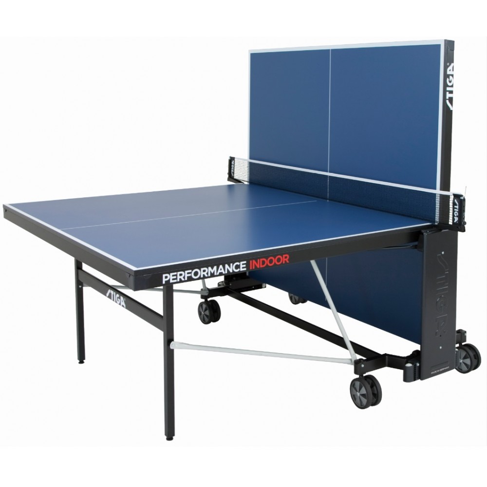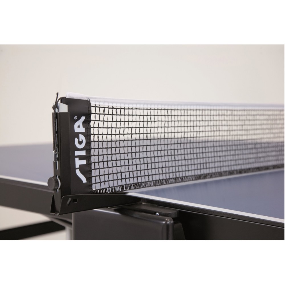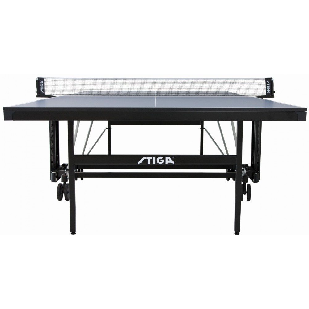 Praktisks tenisa galds izklaidējošām spēlēm telpās. Ar patentētu CS sistēmu (Compact System-Kompaktā Sistēma) un Patent System For Unlocking (Pavelkot metāla rokturi, kas ir pievienots vadam, drošības ierīces tiks atbrīvotas un galdu var novietot spēlēšanas pozīcijā.) Pārvietojas uz riteņiem. Komplektācija: tīkls ir komplektā. Virsma: 19mm / metāla apmale 50 mm. Salikta galda izmēri: 144x73x162 cm. Svars: 85 kg. Ražotājs: Stiga, Zviedrija.Klase: D amatieru. Atbilst Eiropas standartiem: EN 14468-1