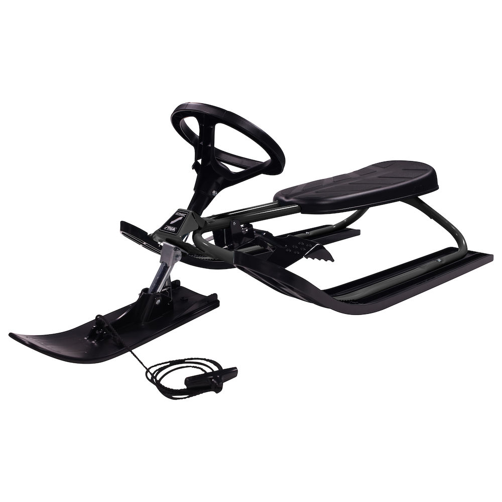 Klasiskās stūrējamās ragavas kopš 1972. Ar izturīgu metāla rāmi. Sistēma ar atsperi liks ragavām pagriezt stūri un apstāties, ja bērns nokritīs. Izmēri:109x50.5cm, sēdeklis:49x22cm. Maksimālais lietotāja svars: 80 kg. Vecums: 5+