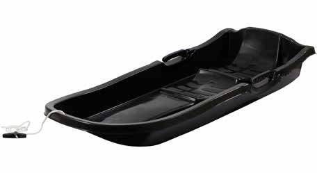 Klasiskas plastmasas divvietīgās ragavas ar atstarotājiem un bremzēm. Vilkšanas virve komplektā. Ražotas Zviedrijā