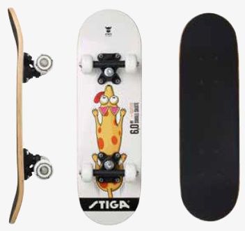 Zviedru firmas STIGA Sports AB Bērnu skrituļdēlis DOG 6,0. Skrituļdēlis bērniem ar stabilu un izturīgu konstrukciju. Izmērs: DĒLIS (9PLY maple) 22x6collas; riteņi 50x30mm poliuretāns; gultņi ABEC1. Lietotāja svars: maks 50 kg, Vecums 5+.