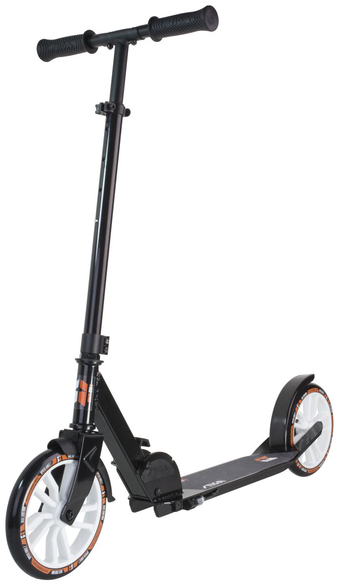 Zviedru firmas STIGA Sports AB skūteris ROUTE 200 S. Viegls, viegli saliekams alumīnija/metāla rāmis, pielāgojams augstums 86-101 cm, PU riteņi 200 mm. Karbona gultņi ABEC 7 gludākai un ātrākai braukšanai. Lietotāja svars:max100kg. Vecums 7+. Krāsa: melna.