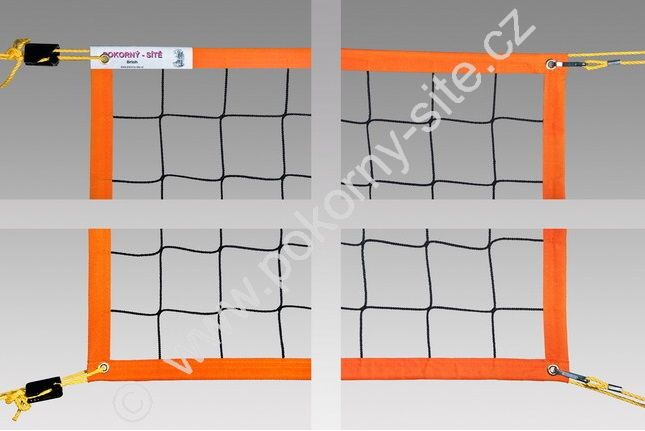 Pludm.Volejbola tīkls BEACH ECONOM,PP,PES lente,2.5mm,4-fiks, metāla trose (oranžs,zils)