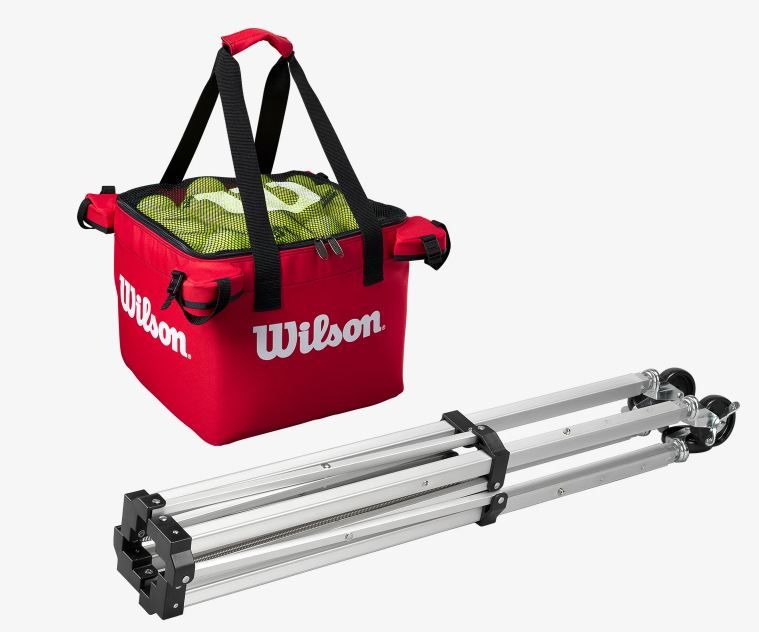 Saliekamas, vieglas alumīnija kājas uz riteņiem un pārnēsājama soma, kurā ietilpst līdz 150 tenisa bumbiņām. Soma ir ērti uzliekama un noņemama uz kājām. Somas augšdaļai ir rāvējslēdzējs, kas nodrošina drošu, ērtu pārvietošanos un novērš bumbiņu izkrišanu. (Komplektā nāk klāt soma sarkana krāsā. Atsevišķi ir arī pieejamas somas zaļā un oranžā krāsās.)