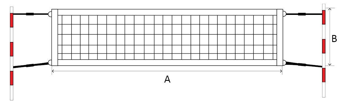 Pludmales tenisa tīkls BEACH ECO, metāla trose, PA 2mm, PES lente, 2.5 mm, 4-fiks