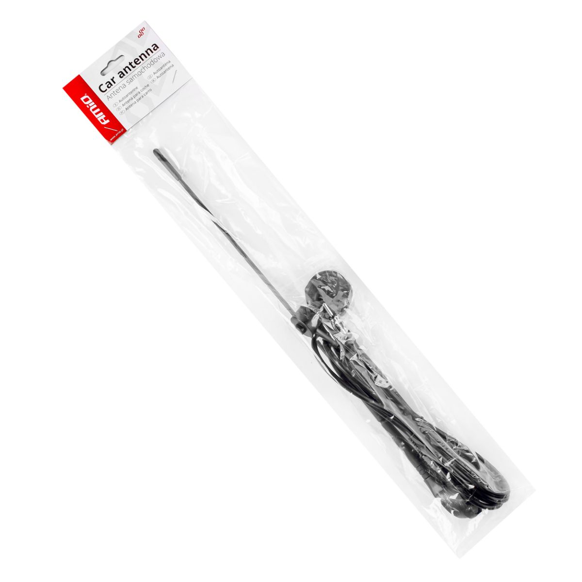 Functional car antenna with a length of 40 cm, designed to receive AM/FM radio waves. The ANT06 model by AMiO is a universal solution fitting most vehicles equipped with a standard mounting socket.