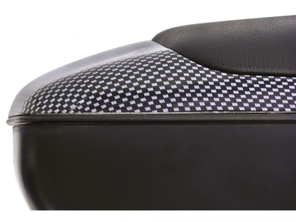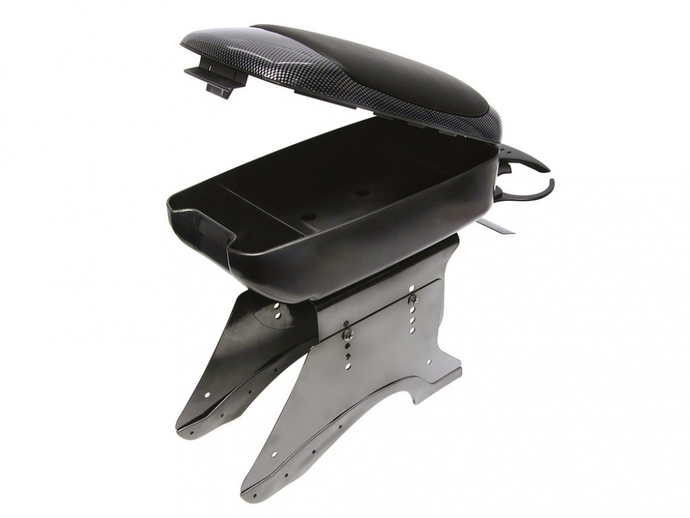 Roku balsts - melns ar karbona apvalku un melnu vinila polsterējumu. Universāls izmērs. Ar atbalsta statīvu. Ieskaitot dubultā dzēriena turētāju. Uzstādīšana starp priekšējiem sēdekļiem. Instrukcijas iekļautas.