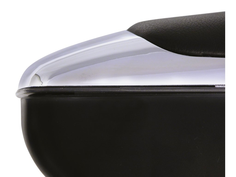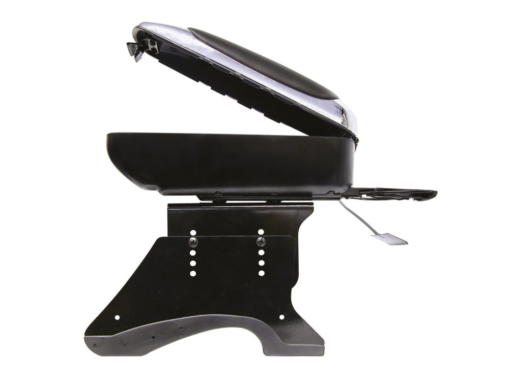 Automašīnas roku balsts - melns ar hroma apvalku un melnu vinila polsterējumu. Ar atbalsta statīvu. Ieskaitot dubultā dzēriena turētāju. Uzstādīšana starp priekšējiem sēdekļiem. Instrukcijas iekļautas. Izmērs universāls.
