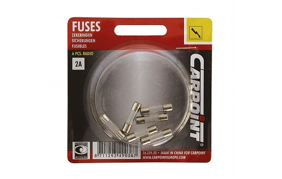 Drošinātāji Radio, stikla korpusā 6 gb. 2A x 6 gb.
