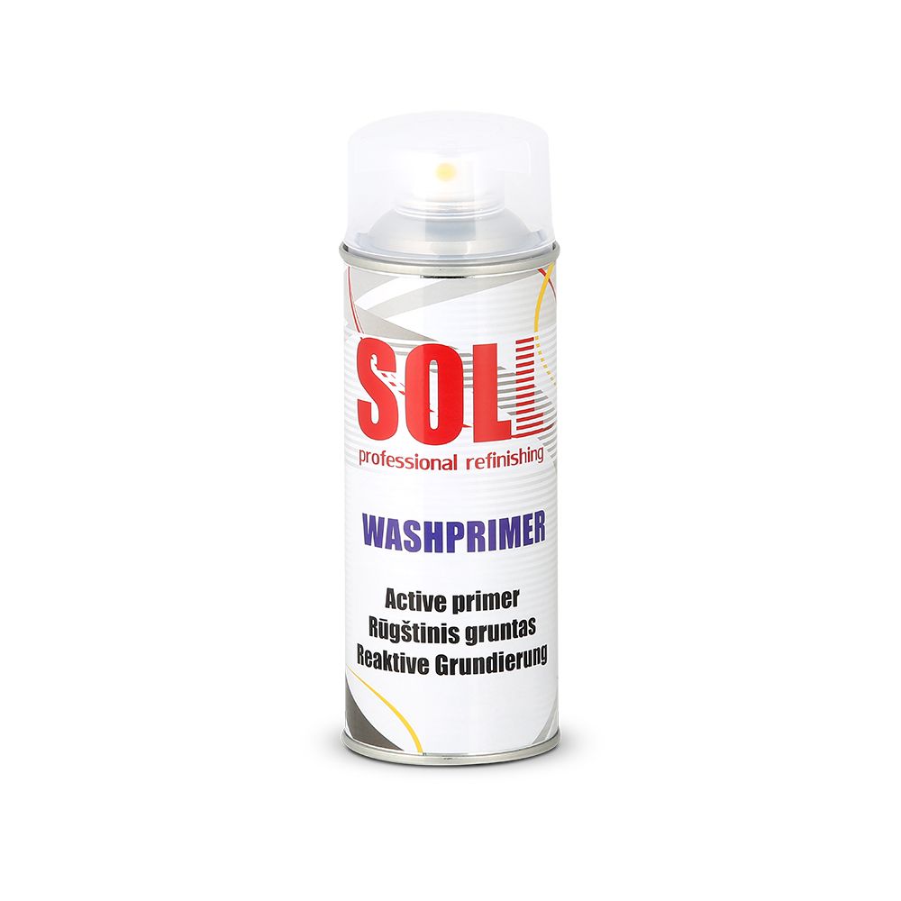 SOLL WASHPRIMER — быстросохнущая однокомпонентная грунтовка с отличной адгезией, особенно к цветным металлам. Хорошая адгезия к железу, стали, цинку и алюминию. Не подходит для использования на термопластичных поверхностях и перед нанесением полиэфирной шпатлевки. Цвет: желтый, прозрачный.