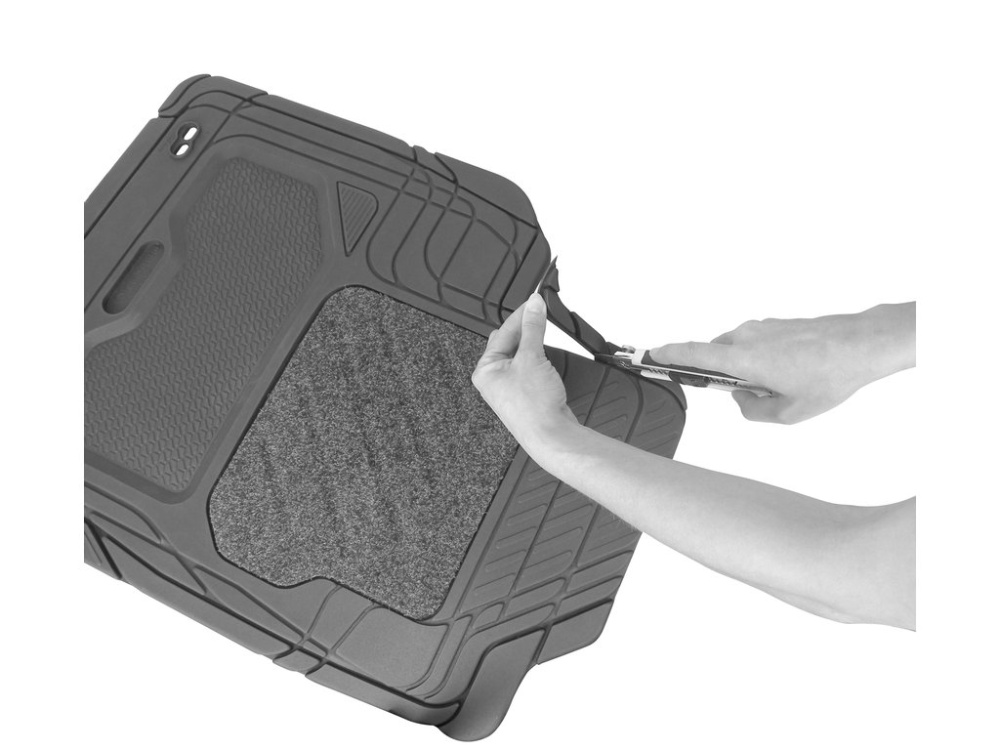 Carpoint 4 daļu gumijas automašīnas paklājiņu komplekts Contour. Paklājiņi aizsargā automašīnas grīdu no netīrumiem, dubļiem, sniega vai ūdens. Komplektā ietilpst 2 priekšējie un 2 aizmugurējie paklājiņi. Automašīnas paklājiņiem ir neslīdoša apakšpuse, kas notur paklājiņus vietā. Paklājiņus var viegli sagriezt vajadzīgajā izmērā, izmantojot griešanas līnijas.