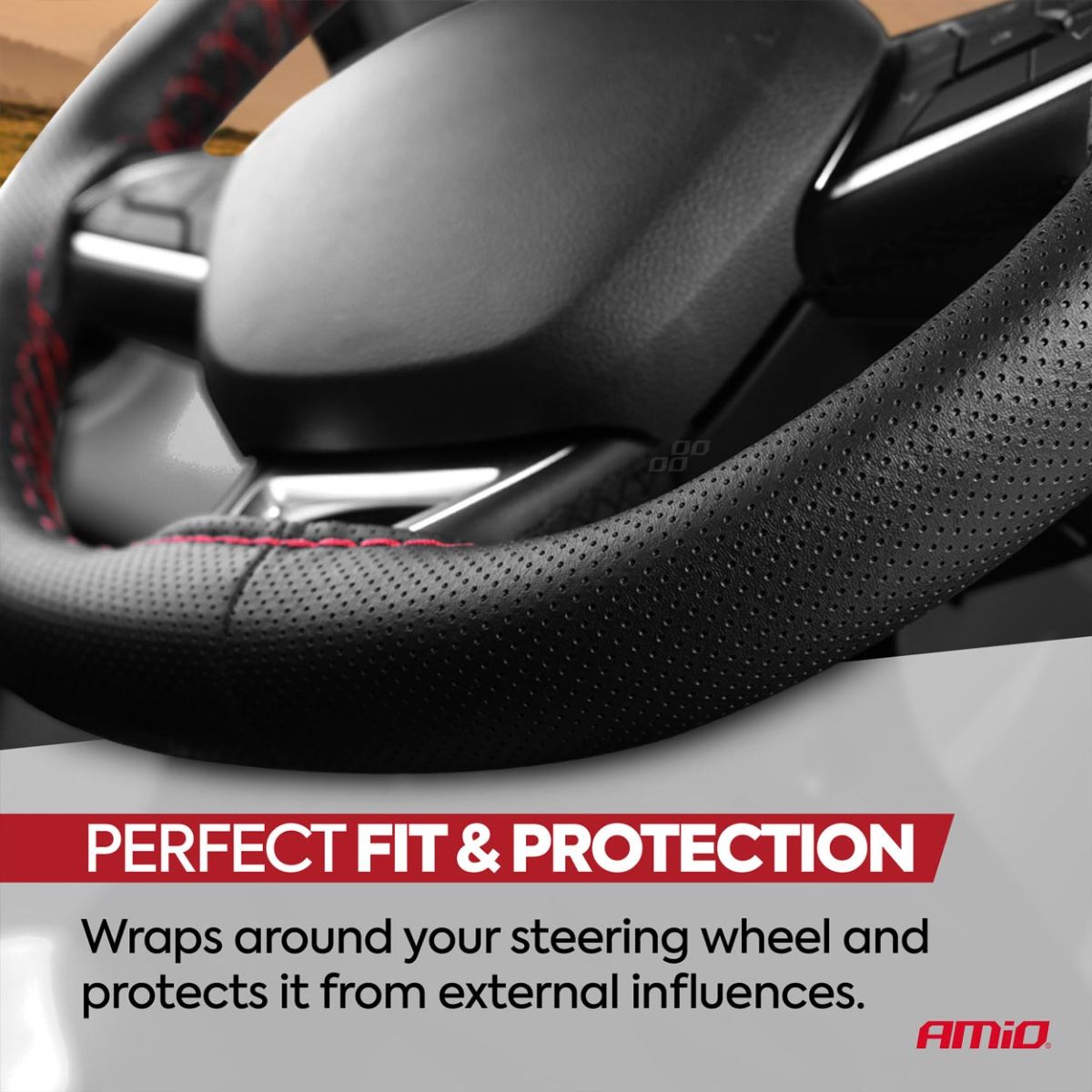 Perforated Stitching steering wheel cover black with red thread 38-39 cm